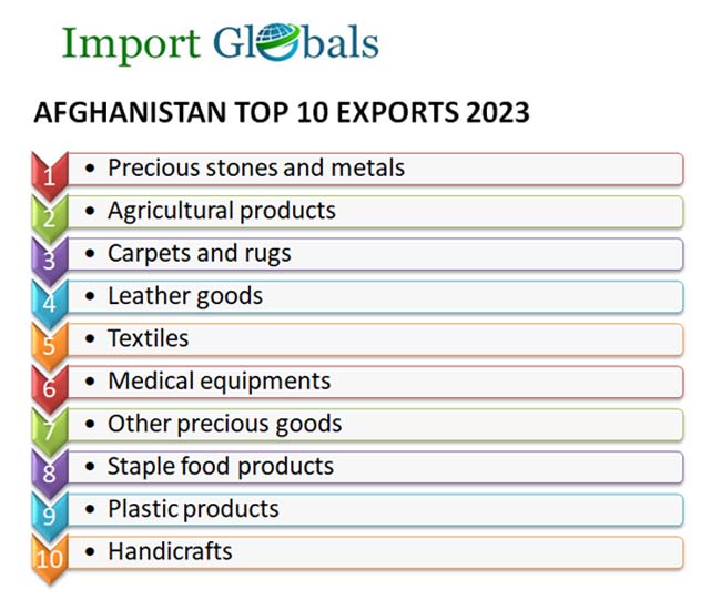 As per the Afghanistan Export Data, the country used to export a variety of products to different other nations in accordance with its total production rate. The trade rates of different products like precious goods and agricultural goods may increase or decrease simultaneously based on the trade agreements with the trading partner. The Afghanistan Export Trade Data showcases that the export trade of 2023 account for an overall value of 2.1 billion US dollars, export trade value of the top 10 products are discussed below,