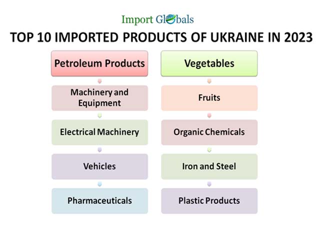 Ans. Petroleum goods are the top imported products of Ukraine in 2023.