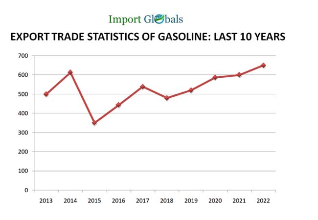 • Global Export trade value of Gasoline in 2022 – 650 billion US dollars