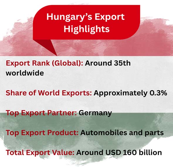 Foreign direct investment has been very important in shaping Hungary's export profile. Hungary is a good place for big electronics and automobile companies to make things since it is in the middle of Europe, has a trained workforce, and low labor prices. As per Europe Import Export Trade Data by Import Globals, these investments not only help exports, but they also bring in new jobs and technology.