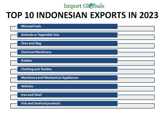 • Mineral Fuels – Export trade value of Indonesian Mineral Fuels exports in 2023 – 50 billion US dollars.