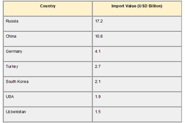 Russia and China are Kazakhstan's two biggest import partners, and the country's geopolitical location and historical commercial relations have a significant impact on its import network. A significant portion of Kazakhstan's overall imports in 2024 came from Russia, which brought in almost $17.2 billion. As per Kazakhstan Export Data by Import Globals, construction materials, automobiles, petroleum, and industrial gear are just a few of the many products that Russia supplies. This trade relationship is further strengthened by the proximity, shared infrastructure, and involvement in regional economic unions like as the Eurasian Economic Union (EAEU). With $10.8 billion in 2024, China ranks as Kazakhstan's second-largest import partner. It supplies vital electronics, textiles, heavy machinery, and consumer items, making a substantial contribution to Kazakhstan's consumer and technology industries.