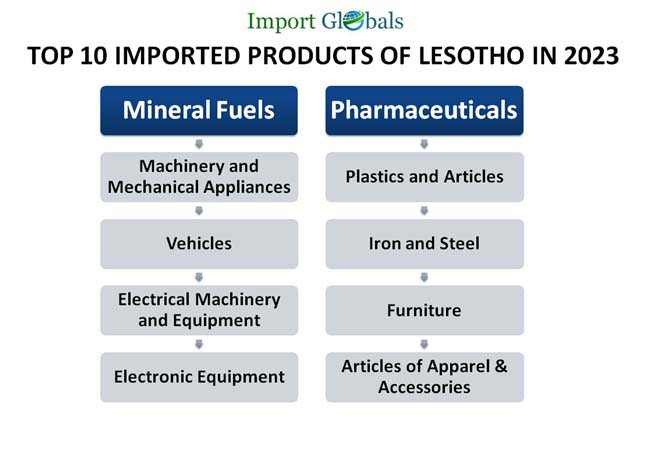 Ans. Mineral fuels are the top imported product of Lesotho in 2023.
