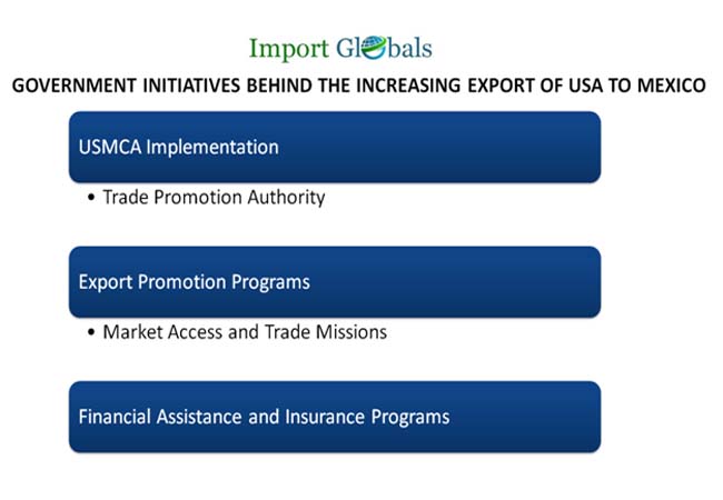 The United Mexican States has been a significant key trade partner of the United States of America for the past few years because of its geographical closeness and cost-effective transportation of Goods. Accompanying the closer geographical proximity, the other factors contributing to the resilience of these two country’s export trade markets are the trade agreements and economic interdependence. The Government initiatives behind the increasing export of USA to Mexico in 2023 are,
