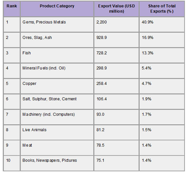 Que. What are Namibia's top export products?