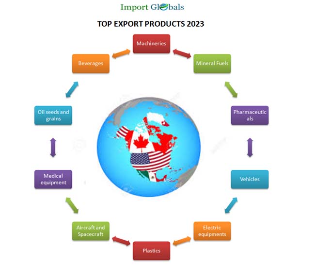 • Brazil – The federative republic of Brazil and the largest economy in Latin America is increasing its trade rate with the North American countries through its developing industrial sectors and production. The total export trade value of the year 2023 for the exported products from North America to Brazil is recorded as 50 billion US dollars.