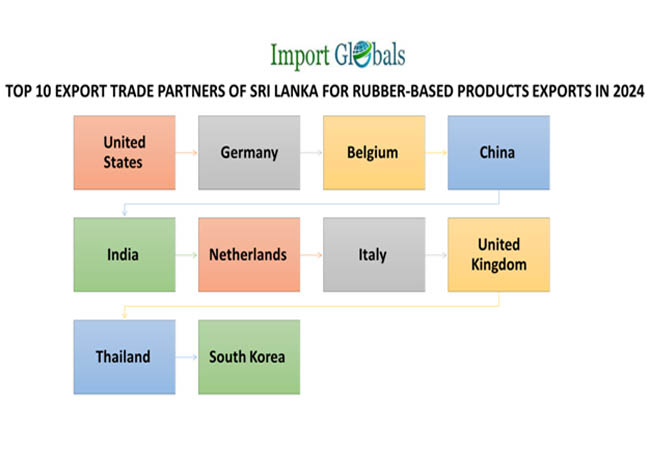 Sri Lanka, the country’s long been known as the top exporter of rubber-based products has now built up its overall trade rate with different trade destination estates. According to the Sri Lanka Trade Data, the top 10 export trade partners of the nation with which it exchanges most of the rubber-based products produced in the industrial sector in 2024 are,