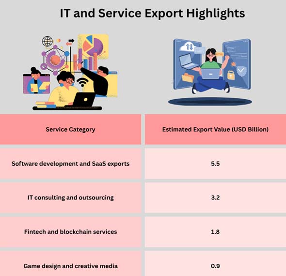 More than 7% of Bulgaria's GDP comes from the IT industry, and the country's exports are increasingly focused on cloud computing, cybersecurity, finance, and business solutions. The presence of huge firms like SAP, VMware, and Hewlett-Packard in the country, along with the growth of startups in Sofia, Plovdiv, and Varna, shows that the country is getting stronger at technology.