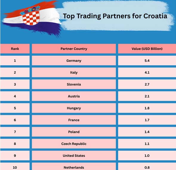 Croatia is a nation in Central Europe that lies next to the Adriatic Sea. Trade with other countries has grown a lot in the last 10 years.