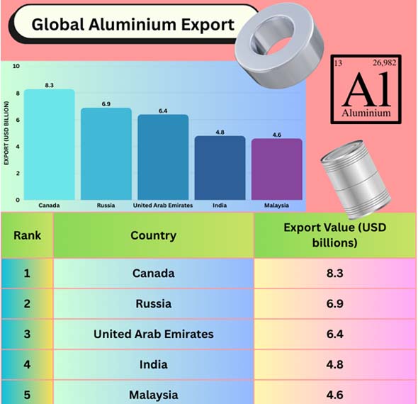 Ans. With shipments of USD 8.3 billion in 2024, or 11.5% of worldwide aluminum exports, Canada is the greatest exporter of aluminum in the world.