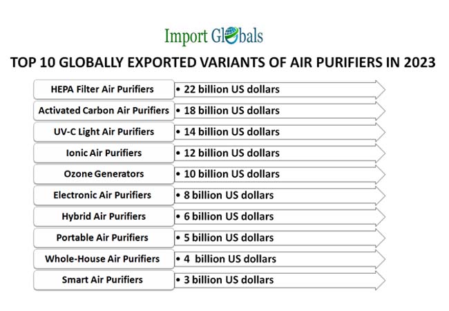 1. HEPA Filter Air Purifiers - The export value of HEPA Filter Air Purifiers in 2023 – 22 billion US dollars.