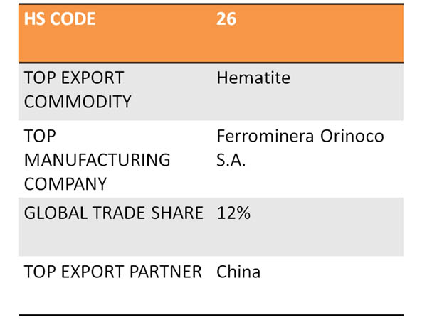 1. Hematite - The export trade value of Hematite from Venezuela in 2024 - 3.2 billion US dollars; Annual trade share - 27%