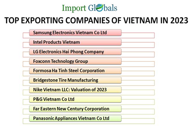 The export trade rate of Vietnam is managed by the top exporting companies and the manufacturing sectors which keep overall control over the growing rate of exports. As per the Vietnam Export Data, the top 10 exporting companies of the nation in 2023 with their trade values are discussed below,