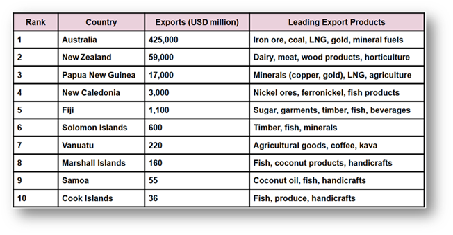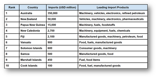 Oceania's regional supply chains, which link big international suppliers with smaller island economies, mostly depend on sea connections. Free trade agreements with the US, China, ASEAN, and Pacific neighbors improve the stability of cross-border trade, according to Oceania Exporters Data. Despite the great distances, Oceania's economy is resilient, forward-thinking, and well-integrated into global supply chains because of its robust network and state-of-the-art logistical infrastructure, according to Oceania Importers Data from Import Globals.