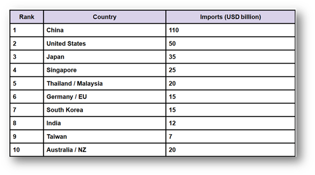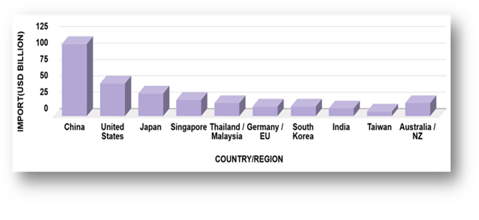 According to estimates, Oceania's overall import value in 2024 will be around USD 480 billion, representing a modest 1.5% rise over 2023 statistics. According to Import Globals' Oceania Import Export Data, the region's top import categories continue to include manufactured products, automobiles, machinery, refined petroleum, and electronics. Oceania's biggest import partners are China, the US, Japan, and Singapore, which provide vital technology and manufactured goods. Because of its robust commodities exports, Oceania maintains a positive trade balance despite its reliance on imports for consumer and industrial products. This equilibrium illustrates the region's crucial role in providing essential raw materials while upholding strong trade ties with international markets.