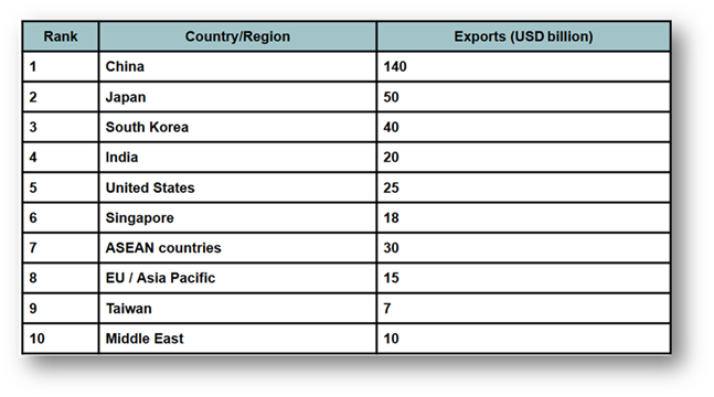 Oceania's export market is expected to reach a total value of over USD 550 billion in 2024 after growing gradually by about 2%. Strong worldwide demand for natural resources, agricultural goods, and energy commodities, which together account for more than 65% of Oceania's total exports, is the primary driver of this expansion, according to Oceania Trade Data from Import Globals. With iron ore, coal, natural gas, and gold as the top commodities, Australia, the largest economy in the region, accounts for almost 75% of Oceania's export value. Dairy, seafood, timber, and agricultural products are exported by New Zealand, Papua New Guinea, and Fiji. Oceania's steady export performance is maintained by strong trade relations with important partners like China, Japan, South Korea, and the United States, even in the face of global market fluctuations.
