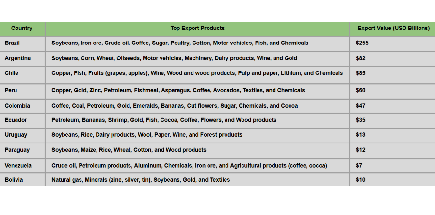 From the Andes Mountains on the western border to the Amazon Rainforest in the north, South America is a huge continent with a varied topography. Its strategic location makes it an essential hub for international trade, particularly with adjacent regions like North America, Europe, and Africa, according to South America Import Data Import Globals. Geographically, because of their proximity and related industries, nations like Brazil, Argentina, Chile, and Peru have robust supply chains and commercial relations within the continent. The greatest economy in South America, Brazil, is intimately connected to nations like Argentina for agricultural products, Chile for copper, and Peru for mineral resources. It is a major supplier of oil, soybeans, and iron ore according to South America Export Data.