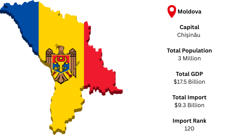 According to Moldova customs data, Romania remained the top import partner, followed by Russia, Ukraine, and Germany. Moldova’s trade partners reflect its strategic location and close ties with both the EU and neighboring CIS countries.