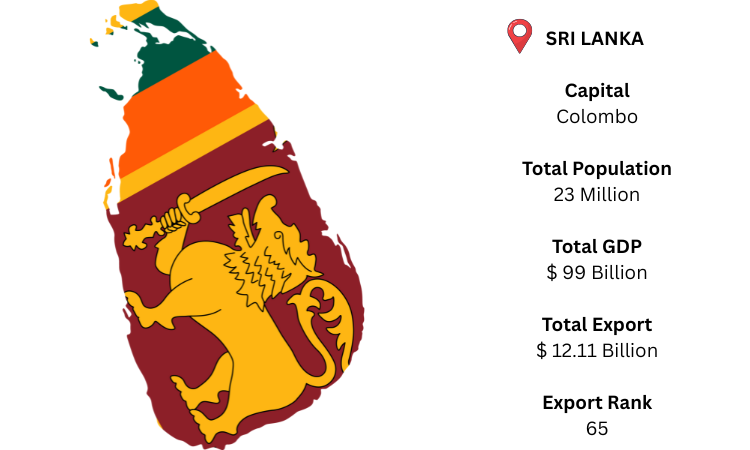 Situated in the Indian Ocean, close to the southeast coast of India, lies the island nation of Sri Lanka, formally known as the Democratic Socialist Republic of Sri Lanka. As per Sri Lanka trade data, the nation with a GDP of USD 99 billion, which has Colombo as its principal port, capital, and economic center, is well-known around the world for its thriving textile sector, rubber goods, precious stones, and Ceylon tea. Sri Lanka's overall merchandise exports in 2024 were estimated to be worth USD 12.11 billion, according to export data. This indicates the country's sustained status as a significant provider of textiles, agricultural products, and specialty industrial items to important markets in North America, Europe, and Asia.